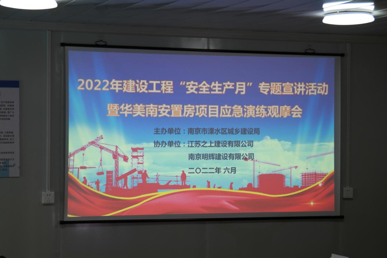 6月10日,由溧水区城乡建设局主办、江苏之上建设有限公司、南京明辉建设有限公司承办的溧水区建设工程“安全生产月”应急演练观摩会和“百团进百万企业千万员工”专题宣讲活动在NO.溧水2020G19华美南安置房项目顺利举行。区城建局局长颜孝兵、副局长刘向东、质安站工作人员及溧水区各在建项目代表参加了观摩仪式。