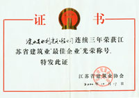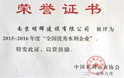 集团企业连续20多年被评为南京市建筑业优秀企业,先后荣获“全国优秀水利企业”“全国优秀施工企业”“中国工程建设企业社会信用评价”AAA“企业”“省建筑百强企业”“省建筑最佳企业”“省建筑业优秀企业”“江苏省重质量守信誉诚信施工单位”、江苏省安全生产先进单位、市水利系统"先进集体"、"AAA"资信单位,获得市级、省级、国家级“守合同重信用企业”等称号。