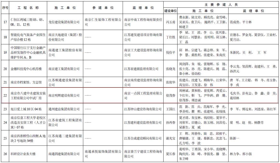 根据《江苏省优质工程奖“扬子杯”评选办法》(苏建规字〔2015〕2号)和《完美官方网页版组织开展2016年度江苏省优质工程奖“扬子杯”申报工作的通知》(苏建质安〔2016〕372号)精神,我厅组织开展了2016年度江苏省优质工程奖“扬子杯”评选活动。经评选委员会审定,并公示无异议,现授予“泉峰新能源工业园项目一期生产厂房一”等项目2016年度江苏省优质工程奖“扬子杯”,并予以表彰。