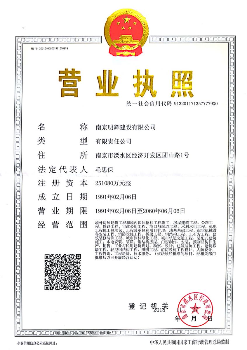 南京明辉建设有限公司营业执照