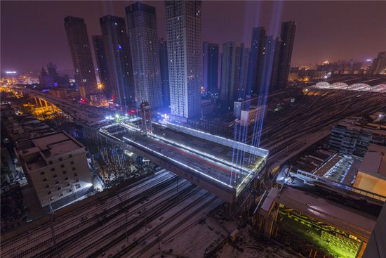 1月31日凌晨3时4分,由中国铁建所属中铁十一局二公司承建的武汉市常青路主线转体桥历时103分钟顺时针转动81度,跨越汉口火车站西咽喉岔区9股道,与引桥实现精准对接,顺利合龙,刷新了转体最不平衡、转体桥面最宽、跨越特等站铁路股道数最多三项转体桥世界纪录。