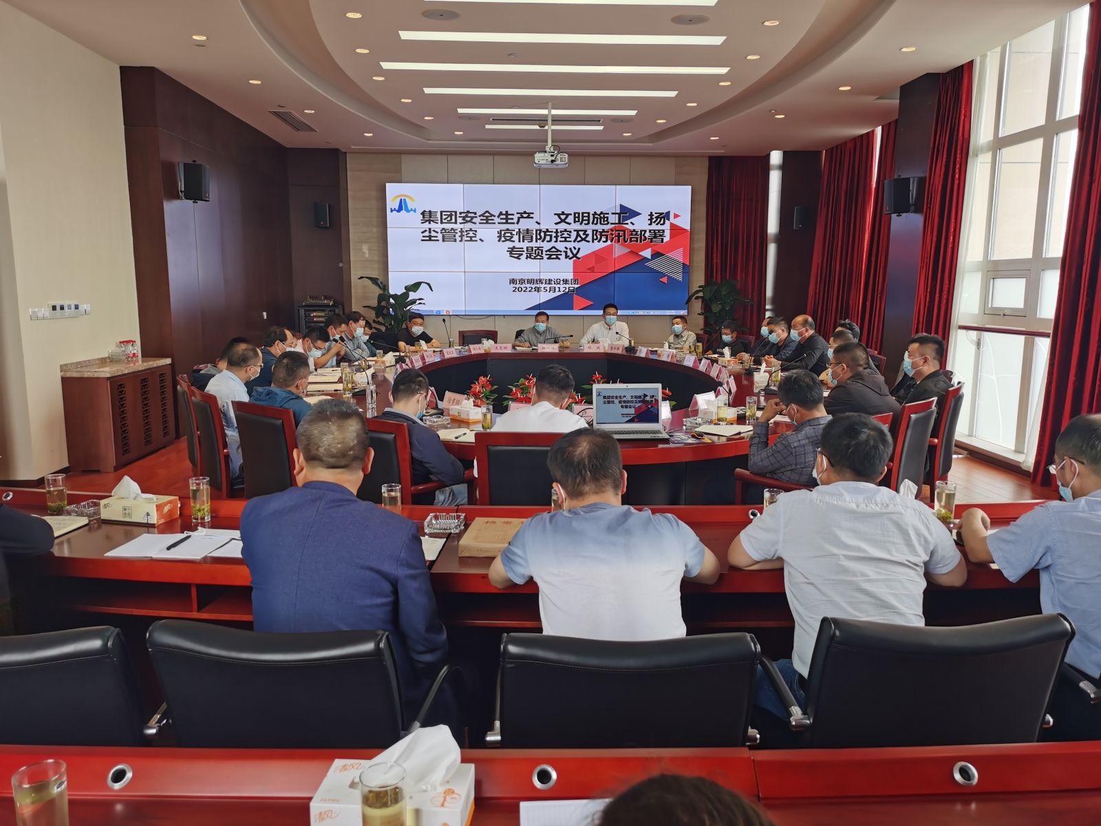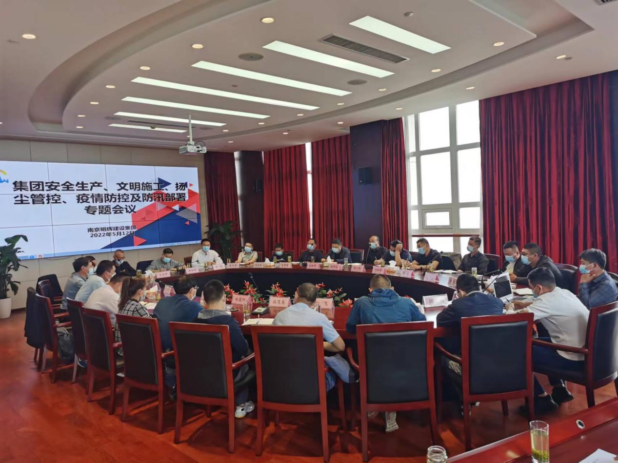 5月12日,南京明辉建设有限公司召开集团安全生产、文明施工、扬尘管控、疫情防控及防汛部署专题会议。会议由总经理杨树国主持,明辉公司主要负责人、相关科室负责人、项目经理、各分公司、施工员、专职安全员参加了会议。